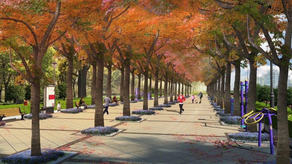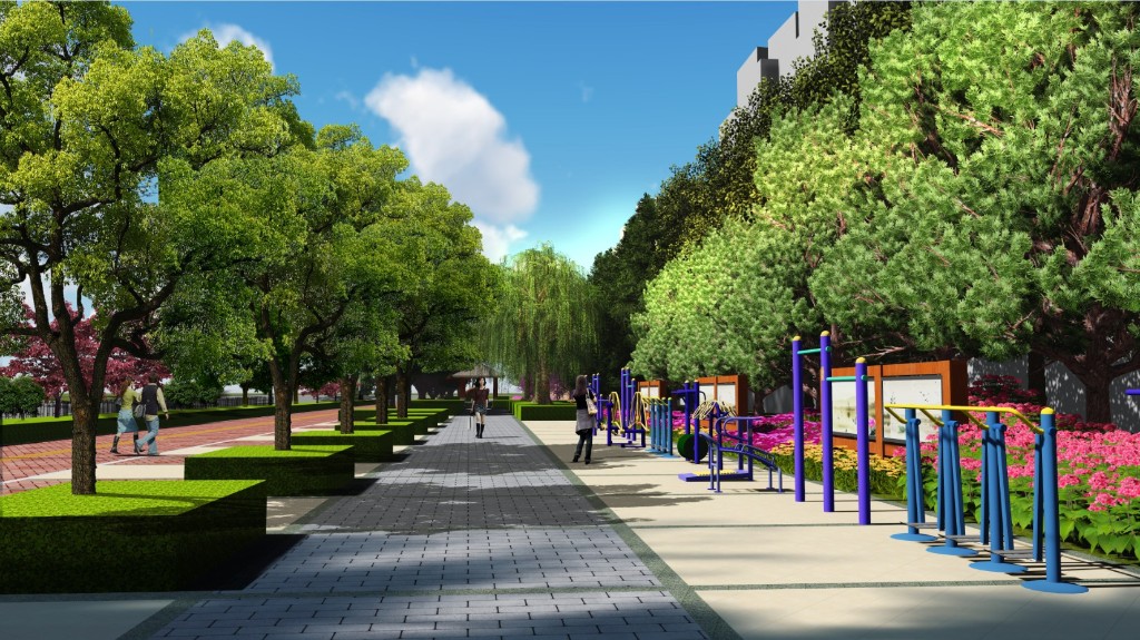 利用下凹式綠地的形式,儲蓄雨水,涵養水源,使得資源利用最大化,打造一條具有生態特色的可持續發展的綠色廊道景觀。創建具有都市自身特色性的綠色生態廊道景觀,利用下凹式綠地響應國家提倡的海綿城市,打造隔斷污染的綠色屏障,健身、休閑的線性城市特色公園。