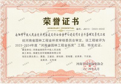 2023-2024年度“河南省園林工程金杯獎”——南陽市中級人民法院審判法庭及訴訟檔案中心建設(shè)項目室外管網(wǎng)及景觀工程