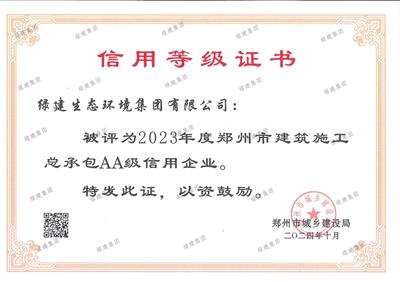 2023年度鄭州市建筑施工總承包AA級信用企業(yè)