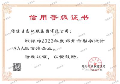 2023年度鄭州市勘察設(shè)計AAA級信用企業(yè)