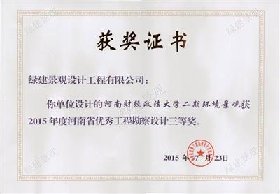 2015年河南省優秀工程勘察設計三等獎(財經大學)