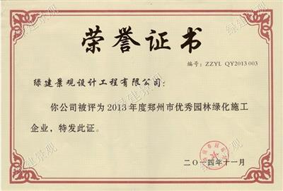 2013年度鄭州市優秀園林綠化施工企業