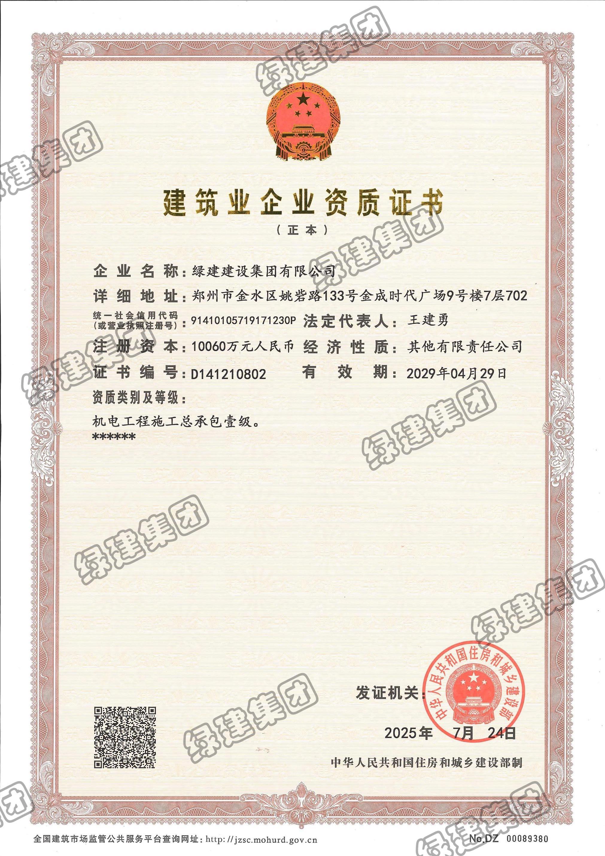 建筑業企業資質證書