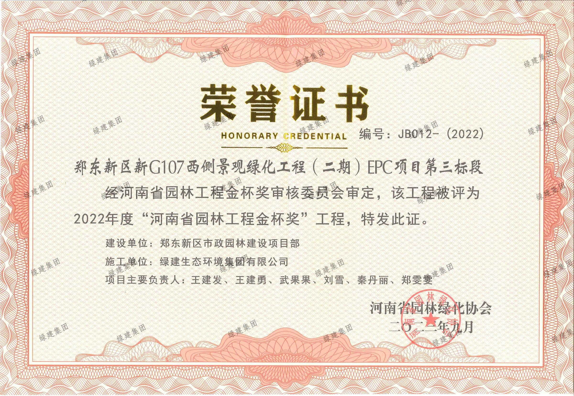 2022年度河南省園林工程金杯獎-鄭東新區G107西側景觀綠化工程