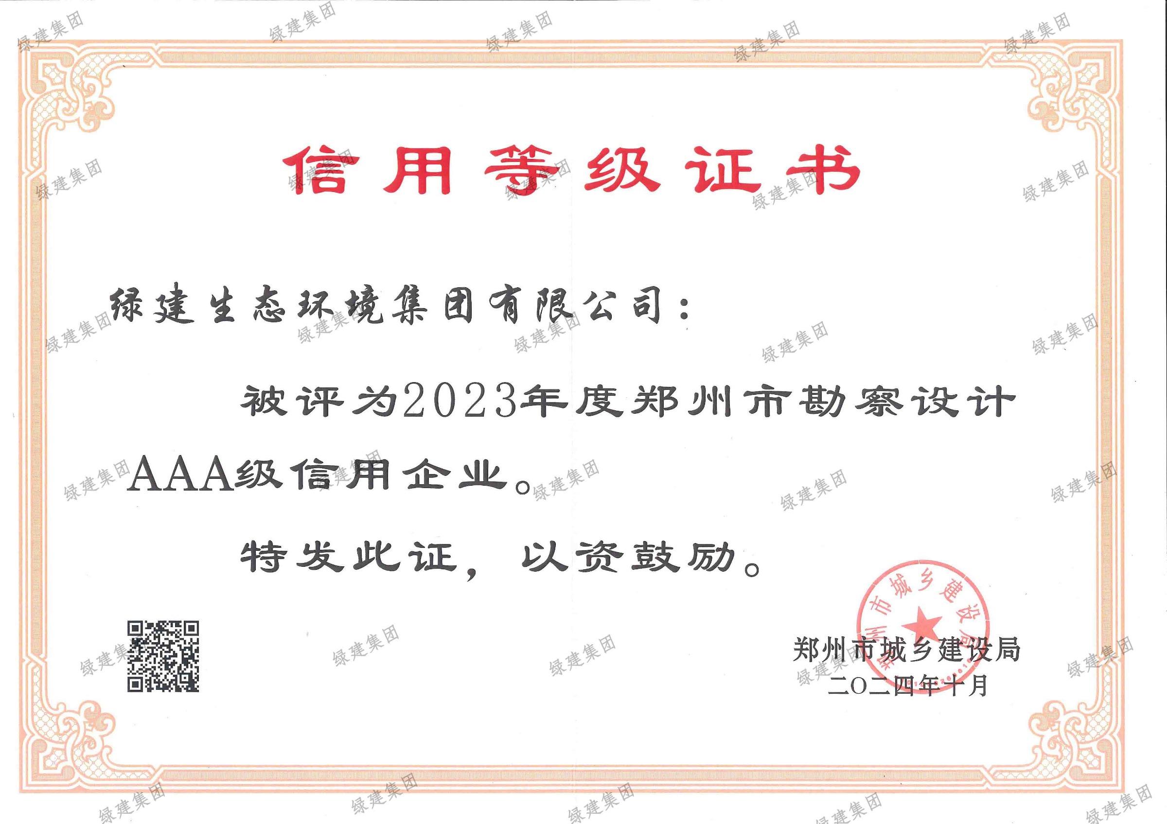 2024年度鄭州市勘察設(shè)計AAA級信用企業(yè)