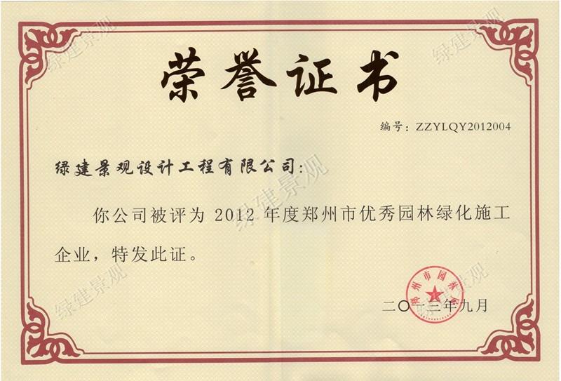 2012年鄭州市優秀園林綠化施工企業