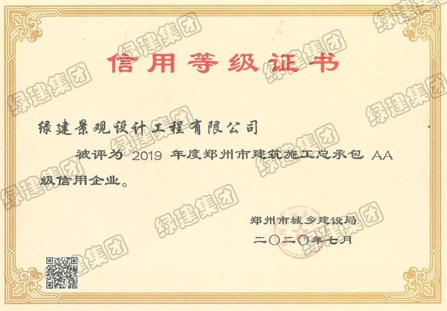 2019年度鄭州市建筑施工總承包AA級信用企業