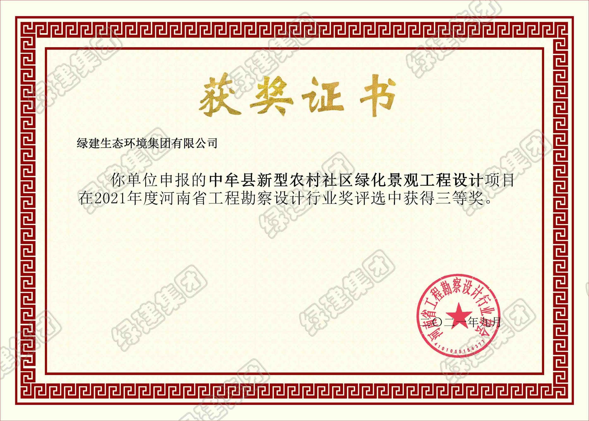 河南省工程勘察設計行業獎三等獎